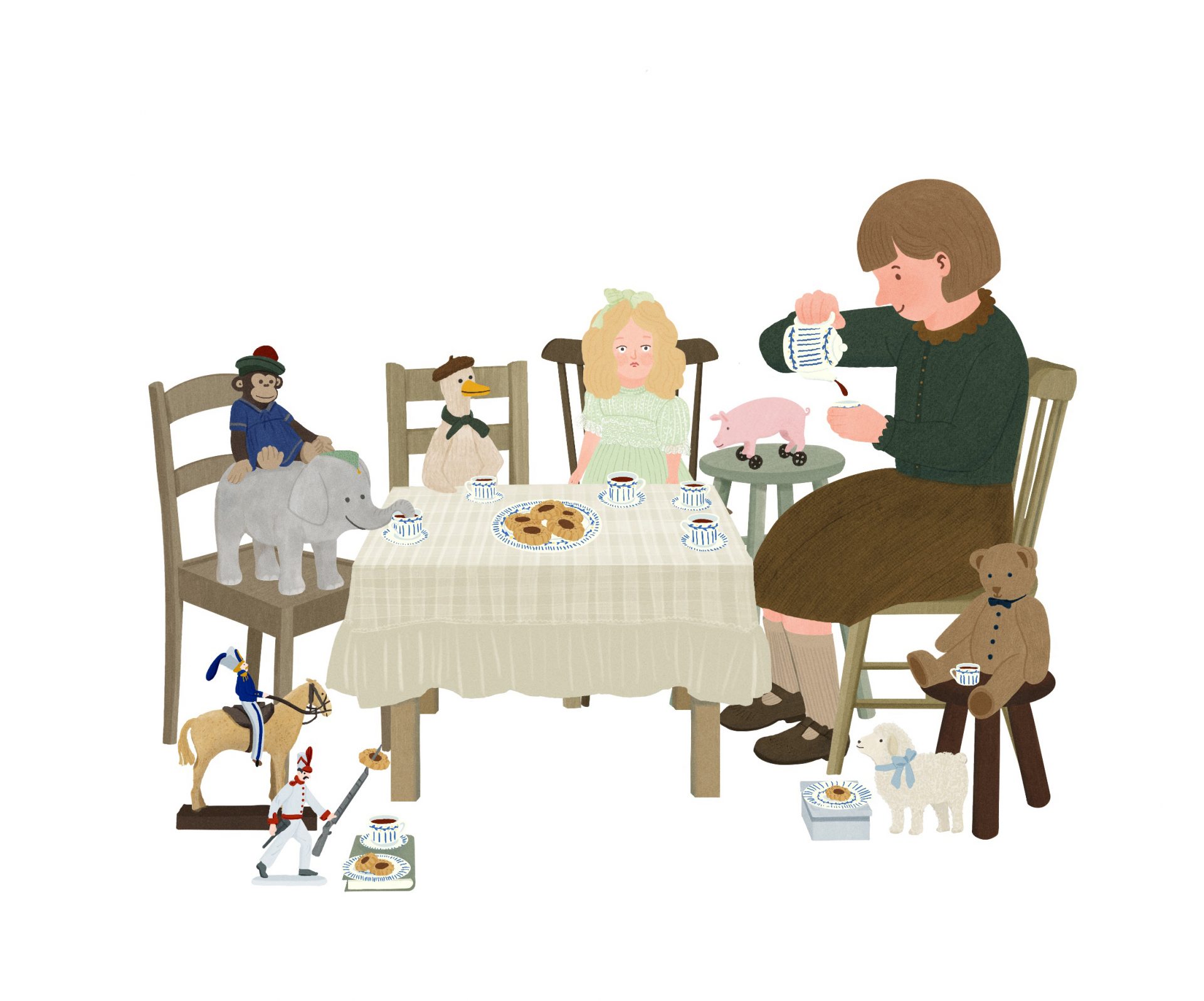 This series of spot illustrations captures quiet, everyday moments of childhood play and imagination. From watering flowers in the garden to sharing a tea party with toys and sipping from a favorite cup, or enjoy a day out with your favourite pet, each scene highlights the small rituals and stories that shape a child’s world. With simple compositions and gentle color palette I tried to bring a sense of warmth and nostalgia to these intimate vignettes.